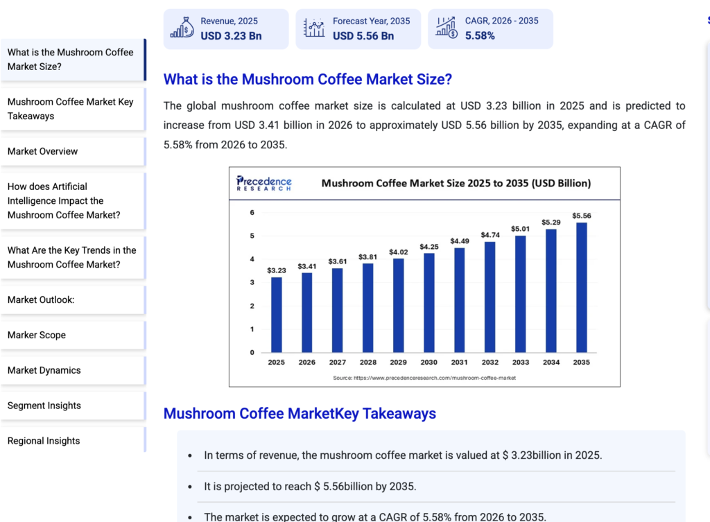 Fuente: https://www.precedenceresearch.com/mushroom-coffee-market