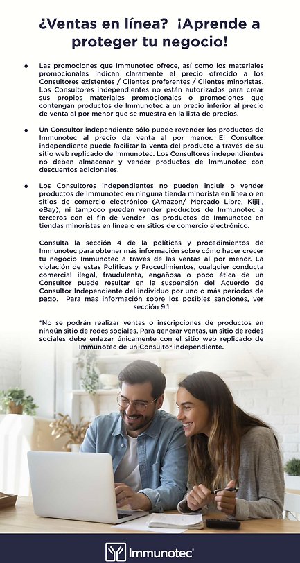Hemos enviado un correo informando sobre las nuevas actualizaciones a las Políticas y Procedimientos de Immunotec. Te pedimos comunicar esta información a todos los miembros de tu equipo.