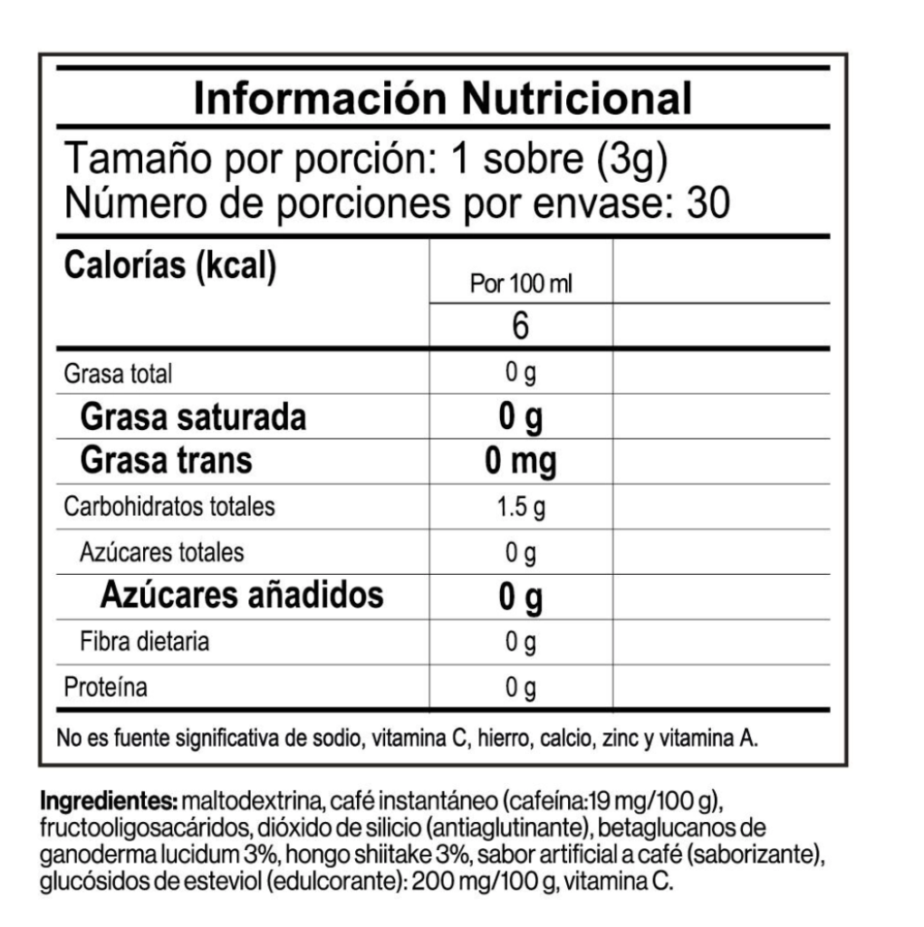 - 🍄 Extractos concentrados de hongos funcionales como Ganoderma lucidum y Shiitake, conocidos por su contenido en beta-glucanos y compuestos bioactivos ampliamente estudiados