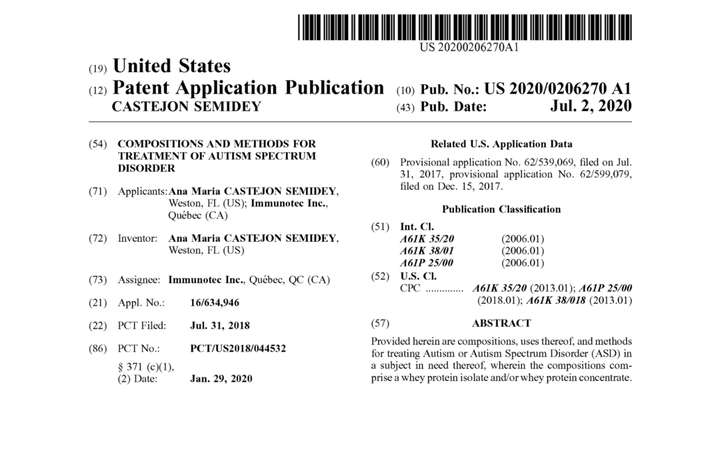 Patente del IMMUNOCAL con respecto al AUTISMO
