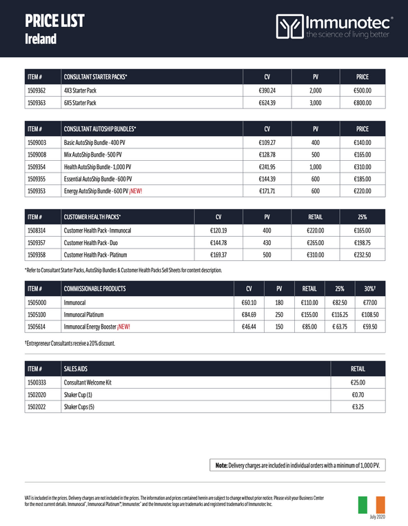 Lista de Precios de IRLANDA