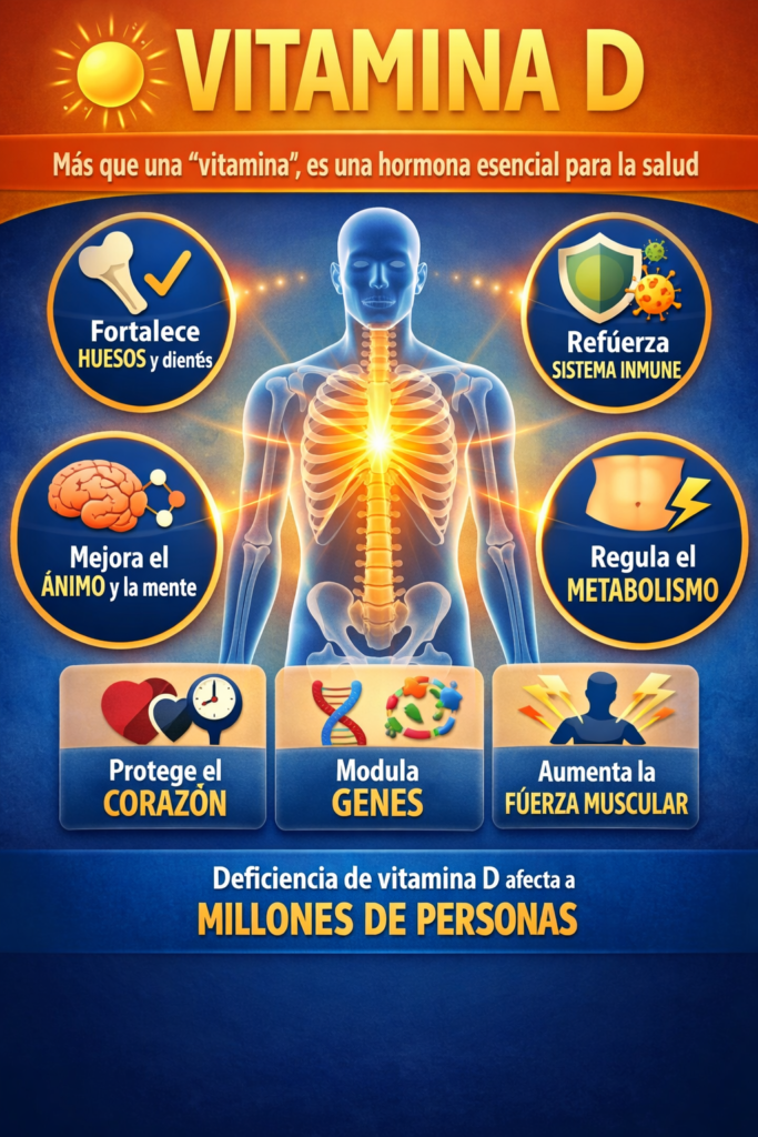 Por esta razón, muchos investigadores consideran que la vitamina D debe entenderse como una hormona reguladora clave para la salud humana, y no simplemente como un micronutriente más.